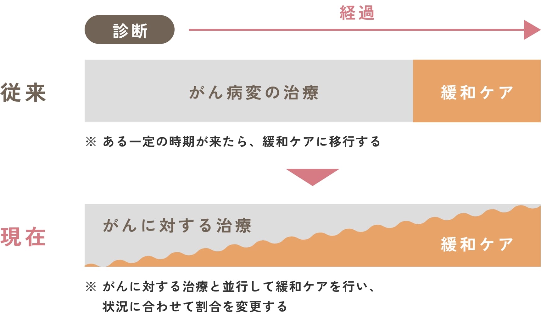 重い病気を抱える患者やその家族一人一人の身体や心などの様々なつらさを和らげ、より豊かな人生を送ることができるように支えていくケアです。