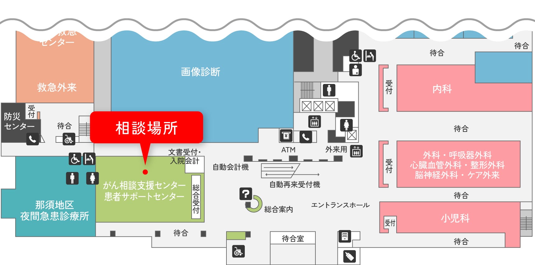 那須赤十字病院相談支援センターでは、患者さんとそのご家族および地域の医療機関の皆さんから「がん」についての相談をお受けしております。どなたでも無料で相談することができ、相談の内容について相談者の同意なくほかの方に知られることはありません。どうぞお気軽にご相談ください。