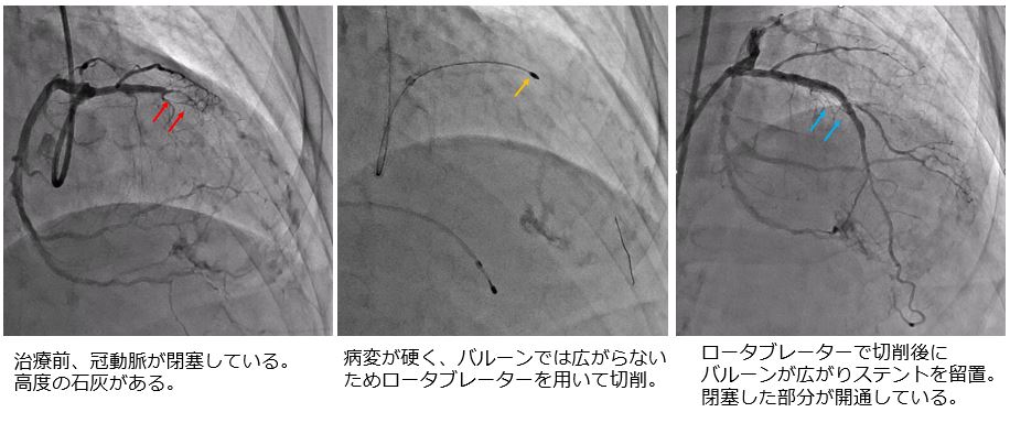 狭心症や心筋梗塞の原因となる、心臓の血管(冠動脈)の動脈硬化巣(プラーク)を取り除くカテーテル治療の一つです。