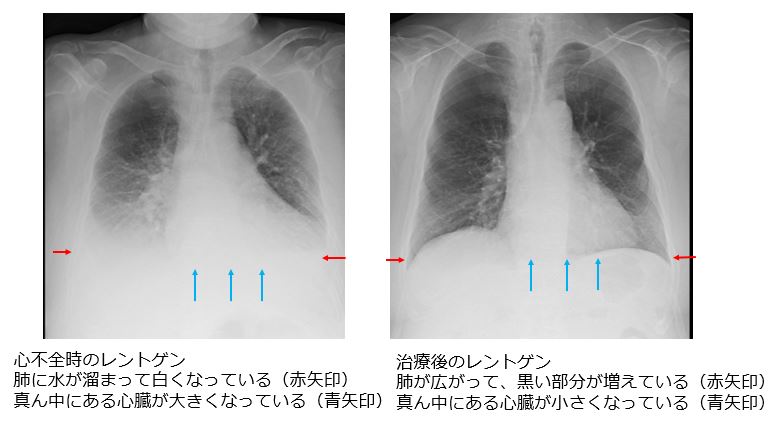 運動をすると苦しくなる、横になって寝られない、足やまぶたがむくんでしまうなどの症状が起きます。